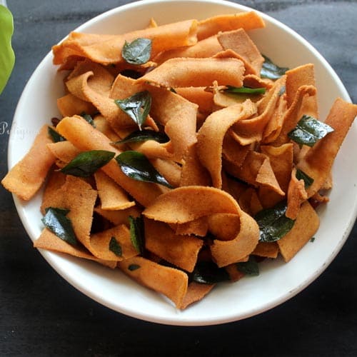 Ribbon Pakoda, also known as Ola Pakoda or Ribbon Murukku, is a popular South Indian snack enjoyed for its unique ribbon-like shape and crispy texture